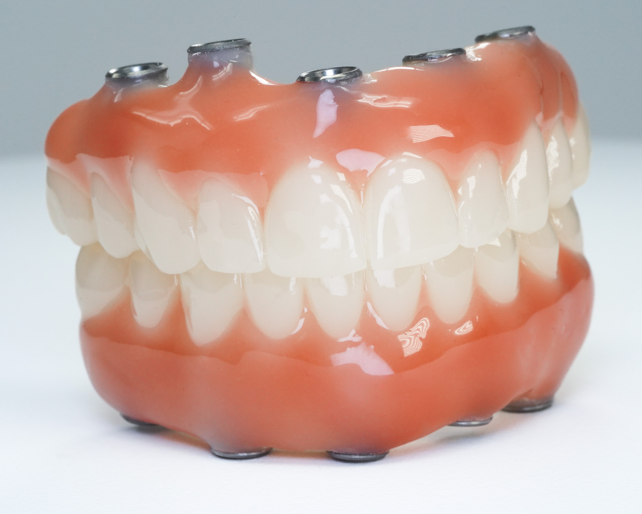 - Features tooth-colored material with optional pink gingiva for realistic patient visualization